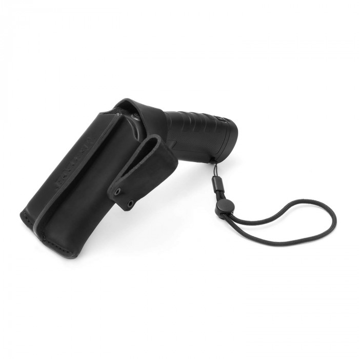 Натуральная кожа — прочный материал, устойчивый к истиранию. Кожаный чехол хорошо держит форму и долго сохраняет изначальный вид. Жесткий аксессуар обеспечивает надежную фиксацию терминала на поясе оператора. Чтобы закрепить его, нужно продеть ремень в петлю. На тыльной части изделия есть застежка, которая не дает прибору выпасть из кобуры.