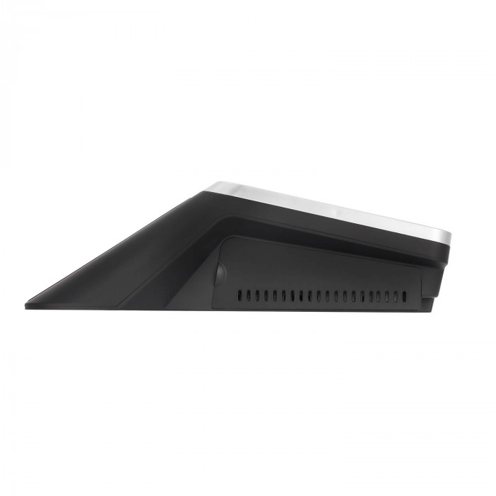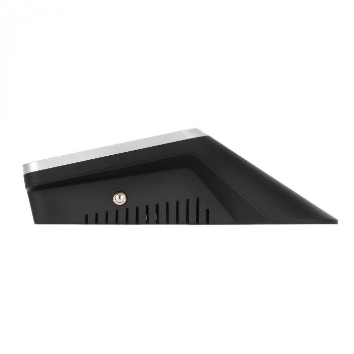 Корпус выполнен в чёрном цвете, имеет современный дизайн и антивандальное исполнение из прочных материалов (пластик + поликарбонат), устойчив к пыли и влаге — степень защиты IP54. Компактные размеры и элегантный внешний вид позволяют легко вписать устройство в интерьер любого торгового зала.