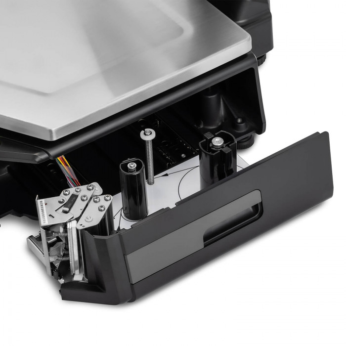 Модель отличается эргономичным и продуманным расположением узлов. Печатающий механизм располагается под платформой. Встроенный принтер работает по принципу термопечати. Ширина зоны печати составляет до 54 мм, а длина этикетки до 90 мм. Время печати наклейки составляет не более 1 секунды.